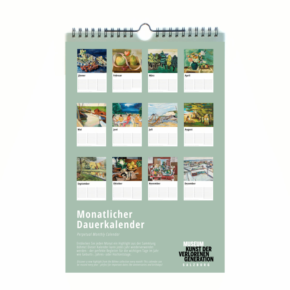 Entdecken Sie jeden Monat ein Highlight aus der Sammlung Böhme! Dieser Kalender kann jedes Jahr wiederverwendet werden - der perfekte Begleiter für die wichtigen Tage im Jahr wie Geburts-, Jahres- oder Hochzeitstage.
