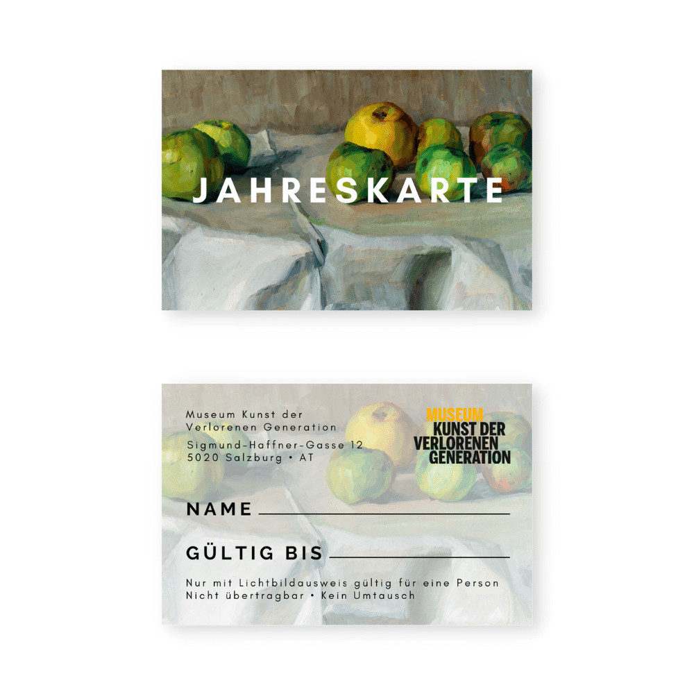 Genießen Sie 12 Monate unbegrenzt Kunst der Verlorenen Generation und bereiten Sie sich selbst oder anderen eine Freude mit unserer Jahreskarte!
