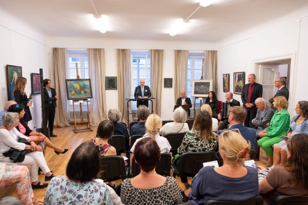 In seiner Rede zur Ausstellung führte der Museumsgründer Prof. Heinz R. Böhme in das Thema der Sonderausstellung zu Paris ein und stellte eine wichtige Schenkung vor, die auch in der neuen Ausstellung zu sehen ist. Musikalisch begleitet wurde der Abend vom Duo „Winkler-Kellerer“ und der Sängerin Simone Pergmann mit französischen Chansons.